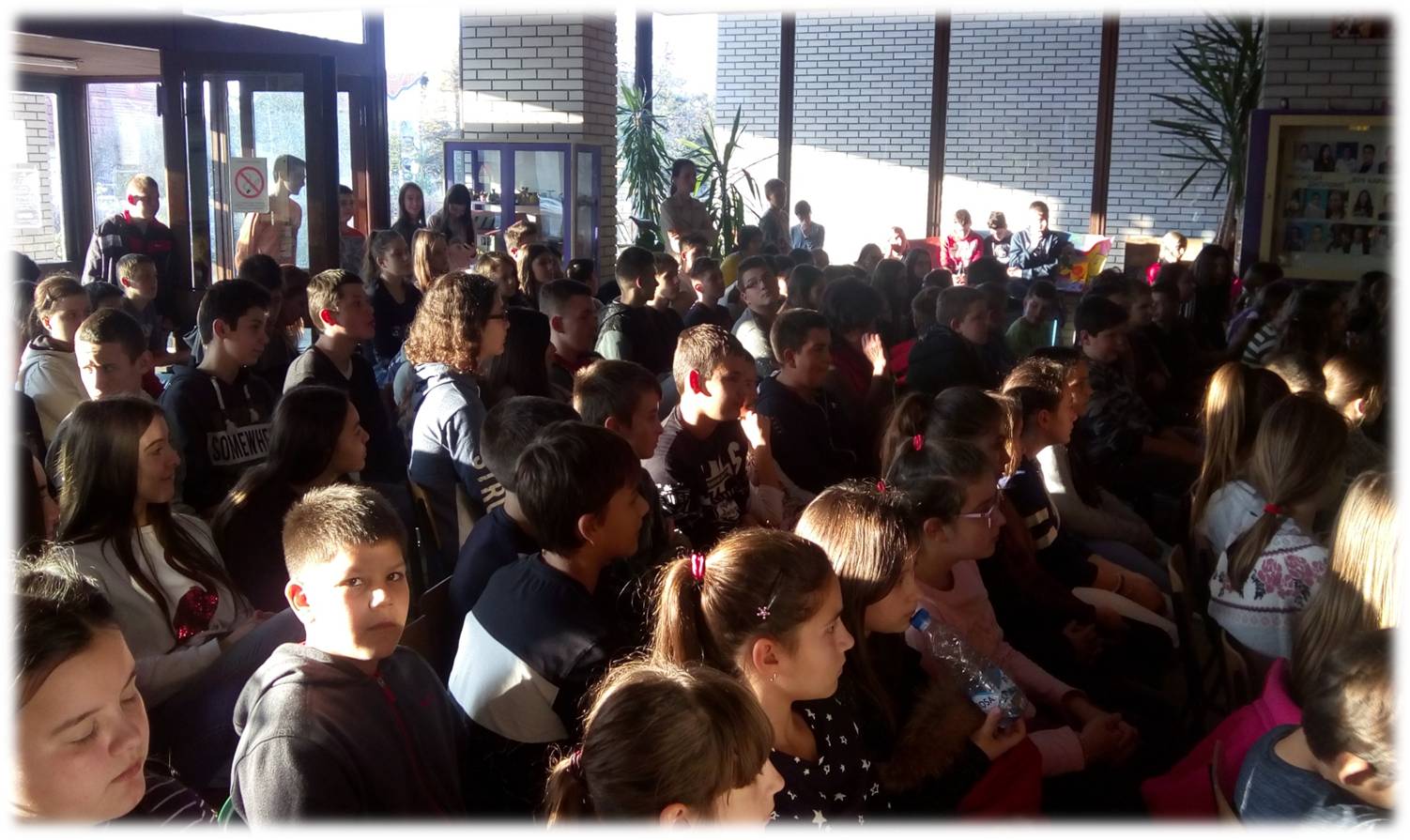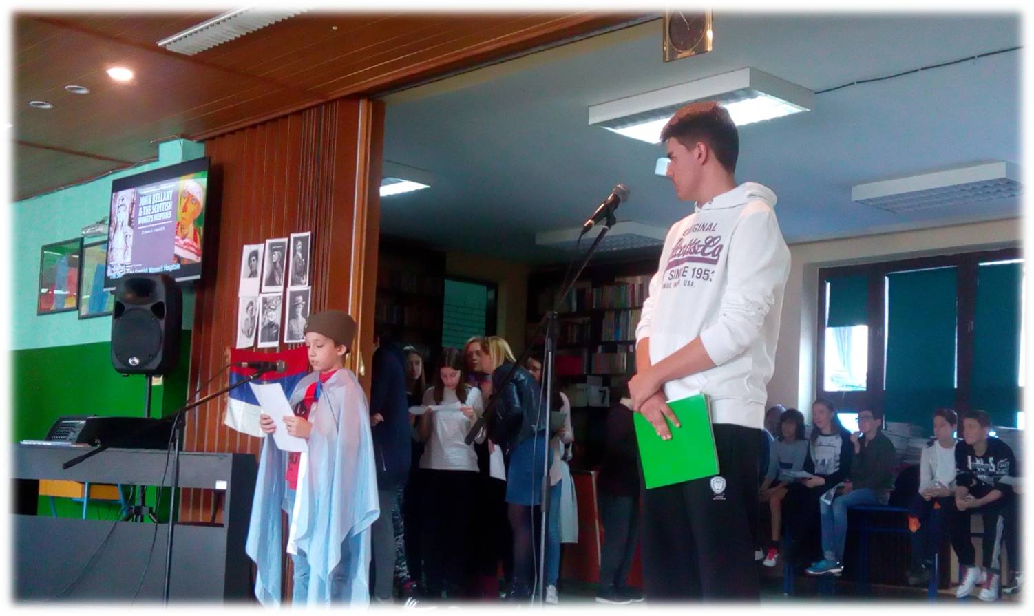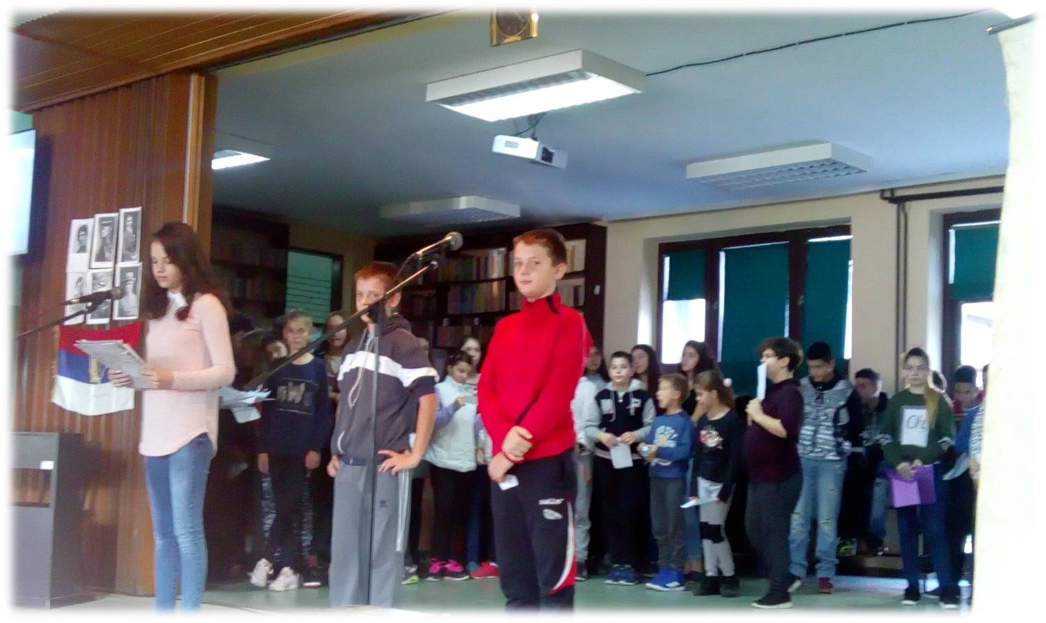 Тематски дан посвећен стогодишњици ослобођења у Првом светском рату под називом Србија у Великом рату одржан је 8. новембра у холу школе где су ученици од 4-8. разреда присуствовали и учествовали у великом часу. Учешће у организацији и реализацији часа узели су чланови актива следећих предмета: историје, географије, енглеског, француског и немачког језика, биологије, хемије, техничког и информатичког образовања, музичке и ликовне културе, српског језика и физичког васпитања, учитељи и педагози који су скренули пажњу на положај деце, младих и жена у току рата.